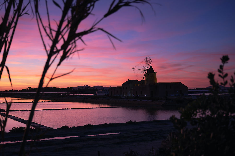 La Riserva dello Stagnone non si esaurisce con Mothia: l’obiettivo della macchina fotografica (o dello smartphone) sarà catturato dai colori delle saline, dal bianco abbagliante dei cumuli di sale al rosso di una micro-alga, la Dunaliella Salina, dal mattone dei mulini a vento, al blu del cielo terso, fino al rosa dei fenicotteri in autunno, stagione di passaggio, a indicare che non esiste una stagione unica per visitare questa magnifica laguna.